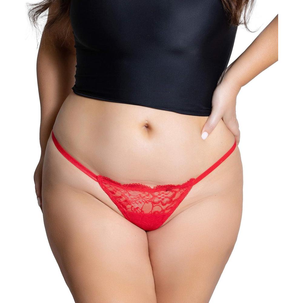 Yandy Plus Size Soft Sheer Low Waist Floral Lace G-string Women Underwear(Red)